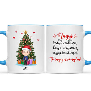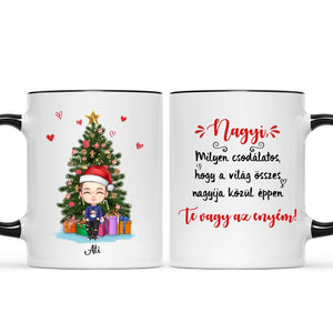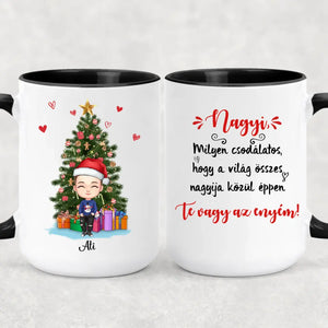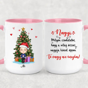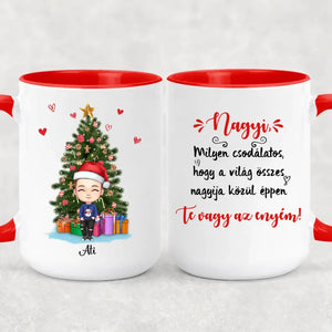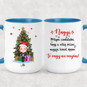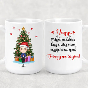 Egyedi karácsonyi bögre nagyszülőknek, akár 4 unokával