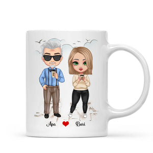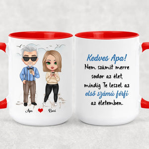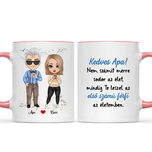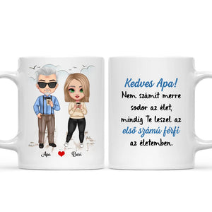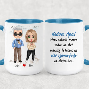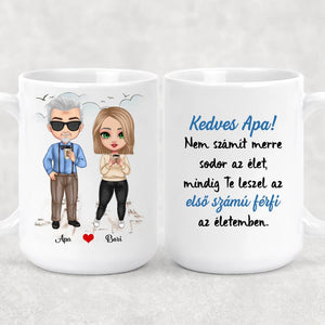 A bögre egyik oldalán a karakterek, míg a másik oldalán a kiválasztott idézet szerepel.