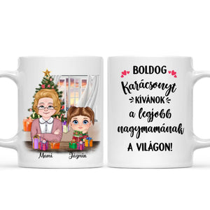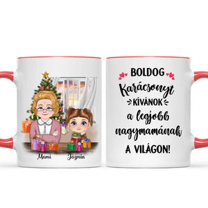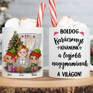 Egyedi karácsonyi bögre nagymamáknak, akár 3 unokával