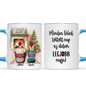 A bögre egyik oldalán a karakterek, míg a másik oldalán a kiválasztott idézet szerepel.