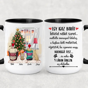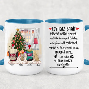 Egyedi kutyás karácsonyi bögre - szerelmespár & 2 kutyus