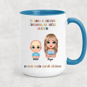 A bögre egyik oldalán a karakterek, míg a másik oldalán a kiválasztott idézet szerepel.