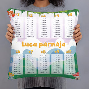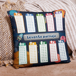 Egyedi tanulópárna gyermekeknek többfajta mintával és színes szorzótáblával – tökéletes választás tanuláshoz és pihenéshez! A párna személyre szabható névvel (pl. „Kristóf párnája”), így ideális ajándék ovisoknak és kisiskolásoknak. Vidám dizájnja játékos formában segíti a szorzótábla elsajátítását. Tökéletes dekoráció és oktatóeszköz egyben!