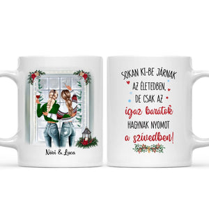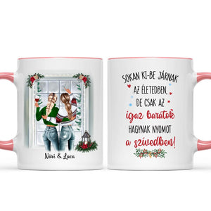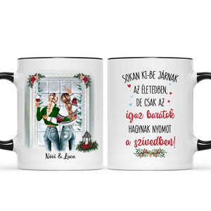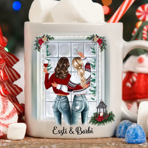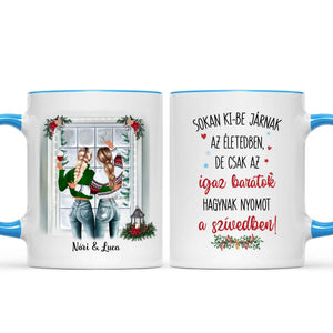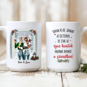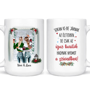 Egyedi karácsonyi bögre barátnőknek - lányok pulcsiban