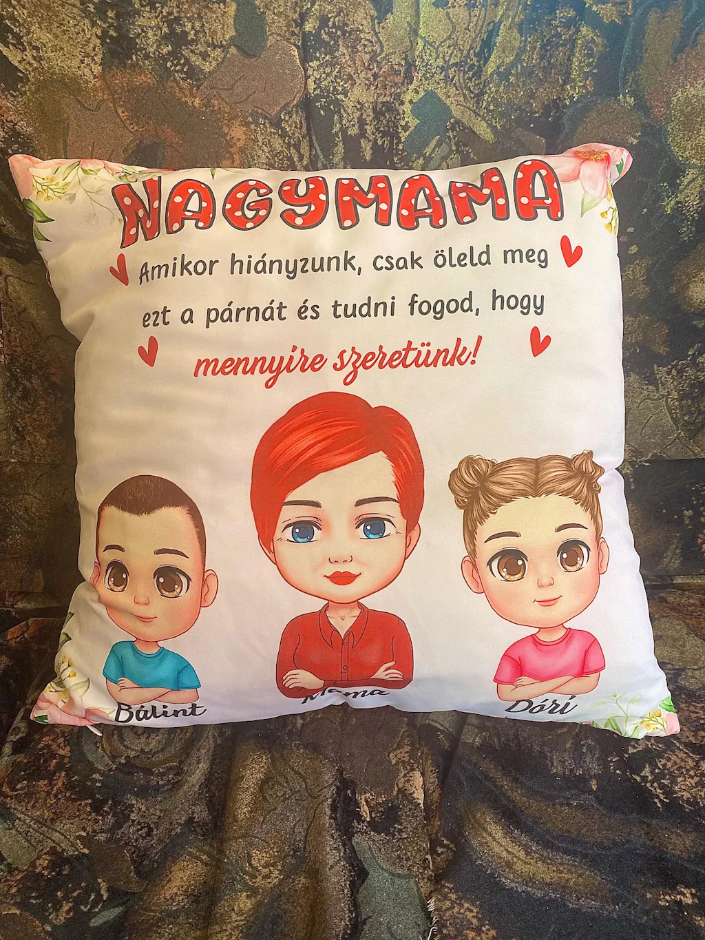 Egyedi anyák napi párna nagymamáknak, akár 4 unokával