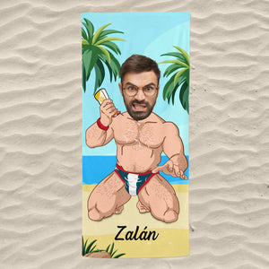 Egyedi vicces strandtörölköző fiúknak - a tengerparton