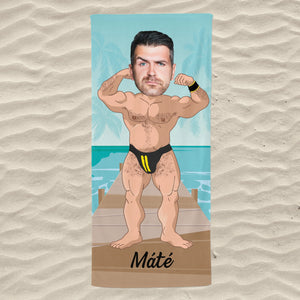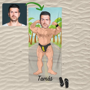 Egyedi vicces strandtörölköző fiúknak - saját arccal
