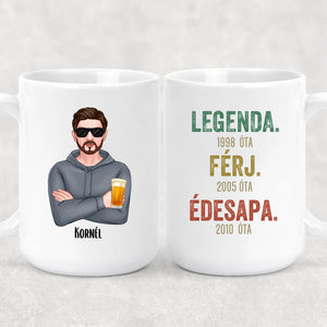 A bögre egyik oldalán a karakterek, míg a másik oldalán a kiválasztott idézet szerepel.
