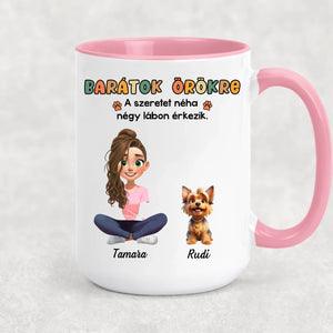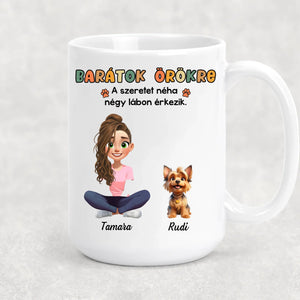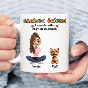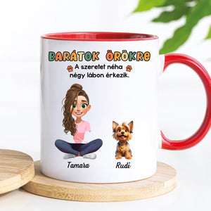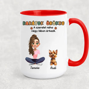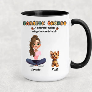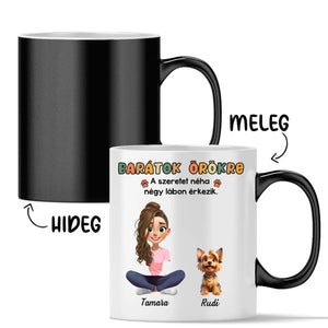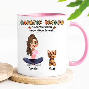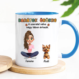A bögre egyik oldalán a karakterek, míg a másik oldalán a kiválasztott idézet szerepel.