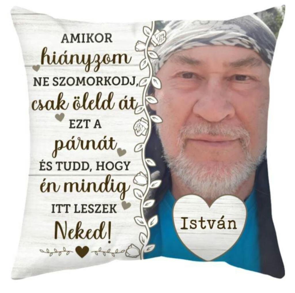 Ez az egyedi párna saját fényképpel és névvel készül, szívhez szóló üzenete pedig mindig emlékeztet a szeretett személyre, így nemcsak dísz, hanem egy ölelés is, ami mindig veled marad.