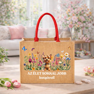 Egyedi juta táska - az élet sokkal jobb kutyával